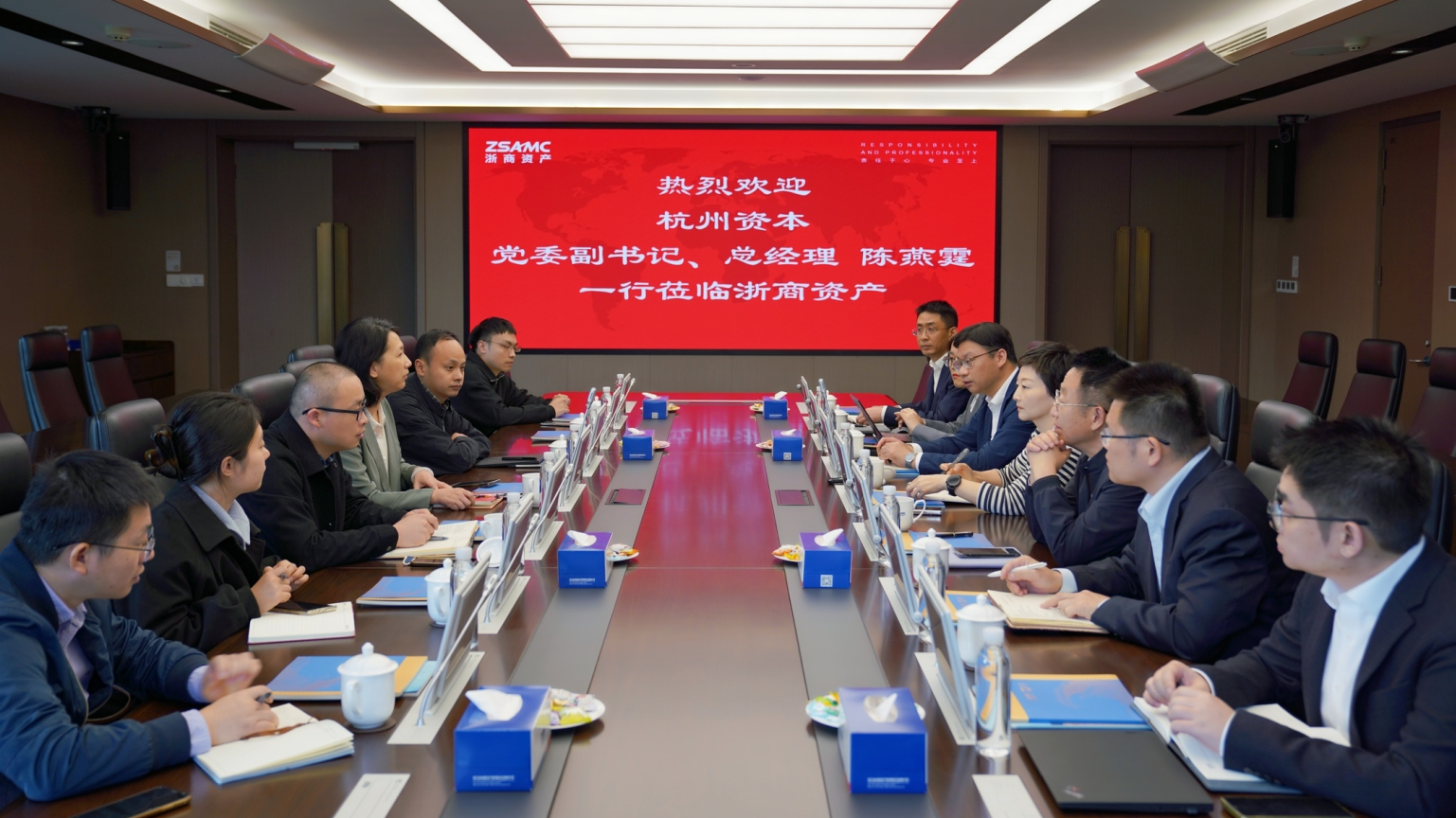 杭州資本黨委副書(shū)記、副董事長(zhǎng)、總經(jīng)理陳燕霆一行來(lái)訪(fǎng)浙商資產(chǎn)