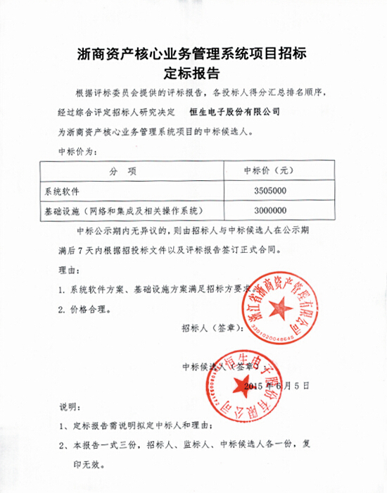 浙商資產(chǎn)核心業(yè)務管理系統(tǒng)采購中標公示