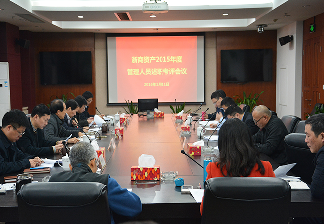 2016年1月11日,浙商資產(chǎn)管理有限公司在大會(huì)議室舉辦2015年度管理人員述職考評(píng)會(huì)議,公司本級(jí)及成員公司相關(guān)人員參加了此次考評(píng)。公司黨委書記、董事長徐德良、公司領(lǐng)導(dǎo)班子成員參加會(huì)議,會(huì)議由黨委副書記葉寶山主持。