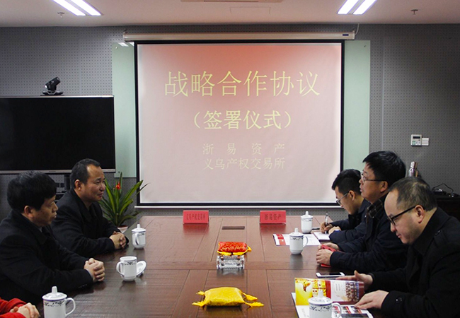 2016年2月4日,浙易資產(chǎn)與義烏市產(chǎn)權(quán)交易所簽訂戰(zhàn)略合作協(xié)議,浙易資產(chǎn)董事長(zhǎng)朱巧偉、總經(jīng)理曹晨及義烏產(chǎn)交所總經(jīng)理趙秋明、副總經(jīng)理陳喜忠出席。