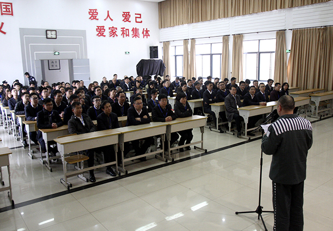 接著,全體參觀人員參加了現(xiàn)場(chǎng)廉政警示教育會(huì)。整個(gè)警示教育會(huì)分三部分。第一部分由教改科教員簡(jiǎn)單介紹二監(jiān)的歷史,并且播放了二監(jiān)的宣傳教育片,讓我們更加立體及全面的了解二監(jiān)在新時(shí)期建立的“健康+”特色管理模式。