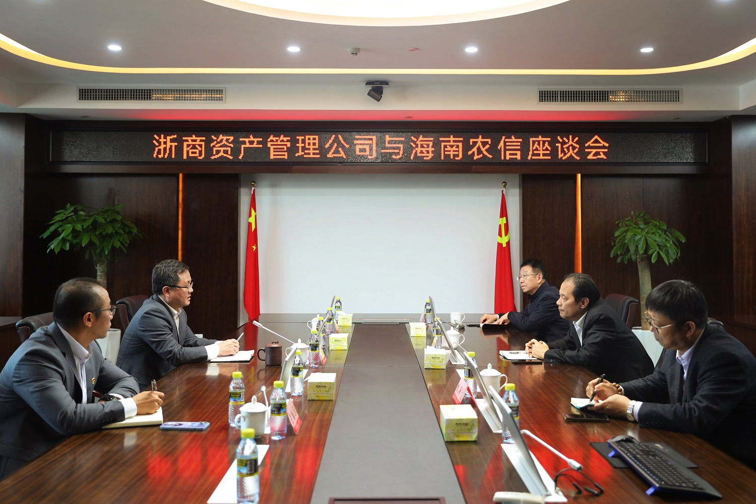 2月23日下午,孫建華一行與海南省農(nóng)村信用社聯(lián)合社黨委副書記、主任李曉剛等開展調(diào)研座談,積極探索業(yè)務(wù)合作方向。期間,孫建華介紹了浙商資產(chǎn)的發(fā)展改革歷程,李偉達(dá)介紹了輕資產(chǎn)業(yè)務(wù)、特資科技和服務(wù)商體系建設(shè)情況。雙方表示,將進(jìn)一步加強(qiáng)合作交流,積極參與和融入海南自貿(mào)港建設(shè)等國家重大發(fā)展戰(zhàn)略,把握好《中國銀保監(jiān)會辦公廳關(guān)于引導(dǎo)金融資產(chǎn)管理公司聚焦主業(yè)積極參與中小金融機(jī)構(gòu)改革化險(xiǎn)的指導(dǎo)意見》帶來的政策機(jī)遇,搶抓“時(shí)間窗口”,在不良資產(chǎn)收購處置、中小金融機(jī)構(gòu)改革化險(xiǎn)等方面謀求短期和中長期合作機(jī)會,為防化區(qū)域風(fēng)險(xiǎn)添勁助力。