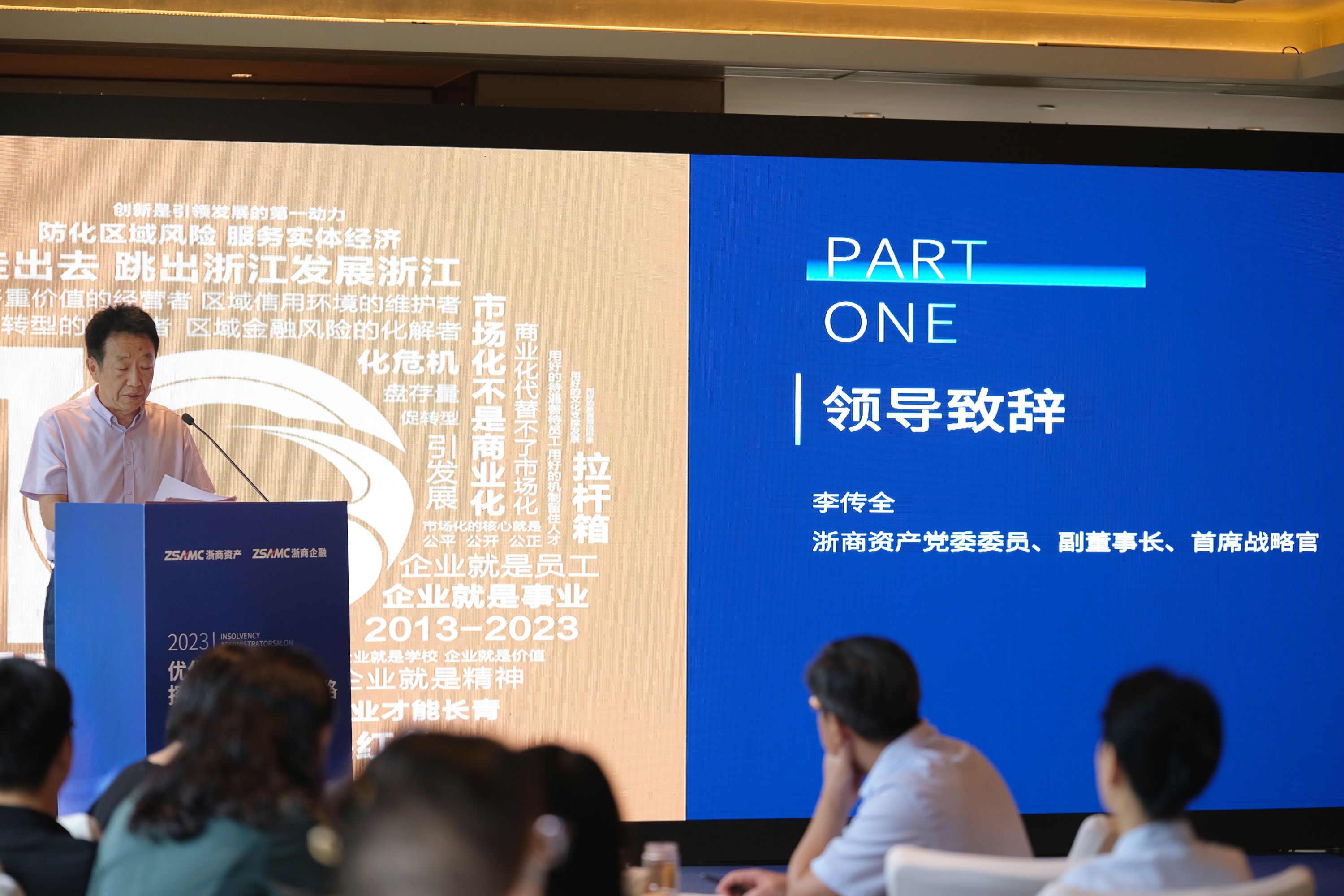 沙龍伊始,浙商資產(chǎn)黨委委員、副董事長、首席戰(zhàn)略官李傳全對地方AMC破產(chǎn)管理人履職和破產(chǎn)重整業(yè)務(wù)進行了全面解讀。他在致辭中表示,面對當前破產(chǎn)清算案件不斷攀升、破產(chǎn)重整需求逐步擴大的特殊投資機遇,地方AMC應(yīng)積極介入破產(chǎn)業(yè)務(wù)領(lǐng)域,充分發(fā)揮自身逆周期金融救助功能,通過專業(yè)化重整重組手段最大限度挖掘潛在價值,幫助企業(yè)恢復(fù)正常運營能力。同時,地方AMC應(yīng)加強協(xié)作、共享發(fā)展機遇,共同推動行業(yè)在破產(chǎn)業(yè)務(wù)領(lǐng)域上邁向新臺階、取得新突破。