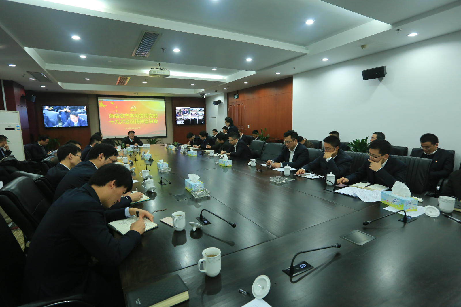 黨委副書記鄭順民表示,公司黨委將組織黨員認真學習貫徹十九大精神,按照孫建華書記宣講內(nèi)容和提出來的要求,切實抓好落實。他強調(diào)了四點意見:一是真學深學,堅持自學與集中學習相結(jié)合、專題討論和交流分享相結(jié)合、學習培訓和開展宣講相結(jié)合、領(lǐng)導帶頭學和黨員普遍學相結(jié)合,做到全面掌握、學深悟透;二是學做結(jié)合,把學習貫徹十九大精神與謀劃公司發(fā)展方向、制定公司發(fā)展措施結(jié)合起來,抓重點、補短板、強弱項,全力做好“國內(nèi)一流”“加速發(fā)展”兩篇文章,努力為全省經(jīng)濟社會發(fā)展貢獻浙商資產(chǎn)的智慧;三是從嚴治黨,圍繞抓基本、打基礎(chǔ),完善黨建工作制度,夯實基層基礎(chǔ),以更加科學、更加嚴密、更加有效的舉措,加強黨的領(lǐng)導;四是擴大宣傳,用好網(wǎng)上網(wǎng)下兩個平臺,發(fā)動黨支部書記帶頭講黨課,謀劃用好公司宣傳欄、微信公眾號、公司網(wǎng)站等宣傳陣地,最大限度凝聚共識。