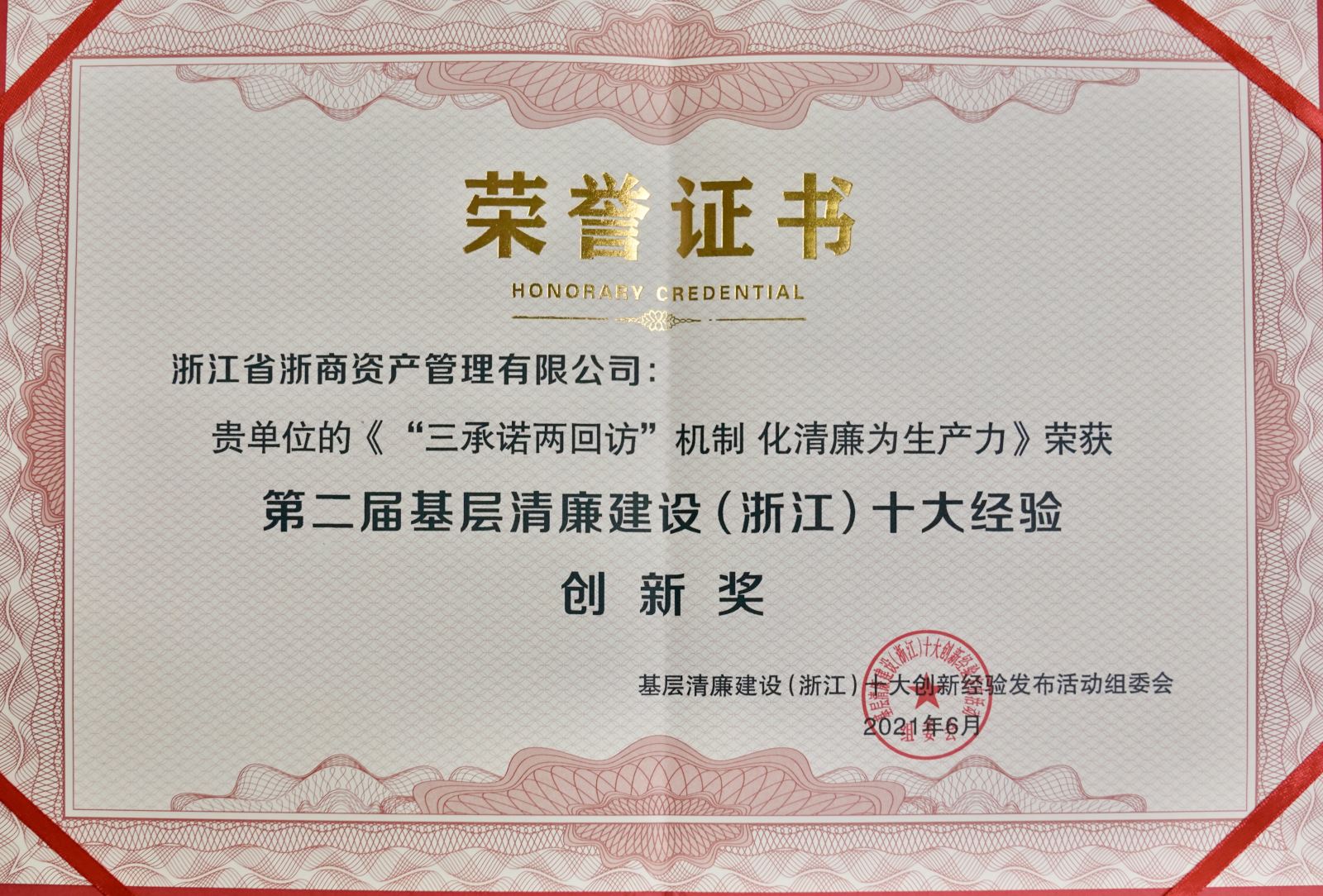 6月18日,由省紀(jì)委省監(jiān)委指導(dǎo),浙江日?qǐng)?bào)報(bào)業(yè)集團(tuán)、浙江大學(xué)主辦,《反腐敗導(dǎo)刊》雜志社、浙江大學(xué)廉政研究中心承辦的第二屆“基層清廉建設(shè)(浙江)十大經(jīng)驗(yàn)”發(fā)布活動(dòng)在杭州隆重舉行,浙商資產(chǎn)《“三承諾兩回訪”機(jī)制 化清廉為生產(chǎn)力》榮獲“創(chuàng)新獎(jiǎng)”。