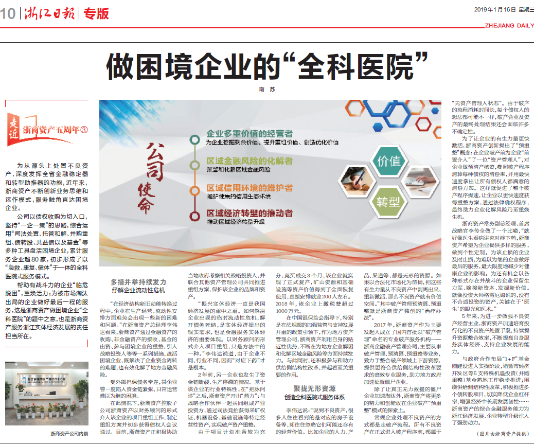 【浙江日報】走近浙商資產(chǎn)五周年系列三:做困境企業(yè)的“全科醫(yī)院”